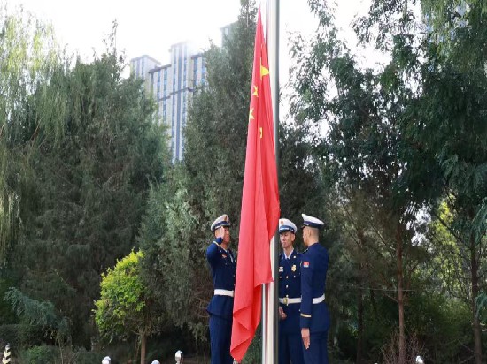 秋意正浓,金风送爽。为庆祝中华人民共和国成立76周年,教育引导广大党员干部弘扬爱国主义精神,国庆节来临之际,市司法局联合市林业和草原局、市信访局隆重举行庆祝中华人民共和国成立76周年升旗仪式。此次升旗仪式特别邀请市消防救援支队指战员担任升旗手,全体干部整齐列阵,庄严肃立,共同见证这一神圣时刻。