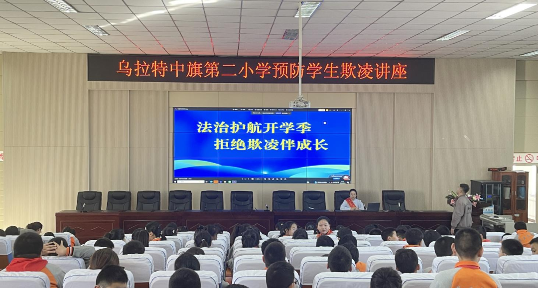 为切实增强青少年法治意识和自我保护能力,有效预防和遏制校园欺凌事件发生,新学期开始之际,乌拉特中旗司法局组织“普法护苗”宣讲团走进第二小学,开展了“法治护航开学季·拒绝欺凌伴成长”专题讲座,让法治种子在青少年心中生根发芽。