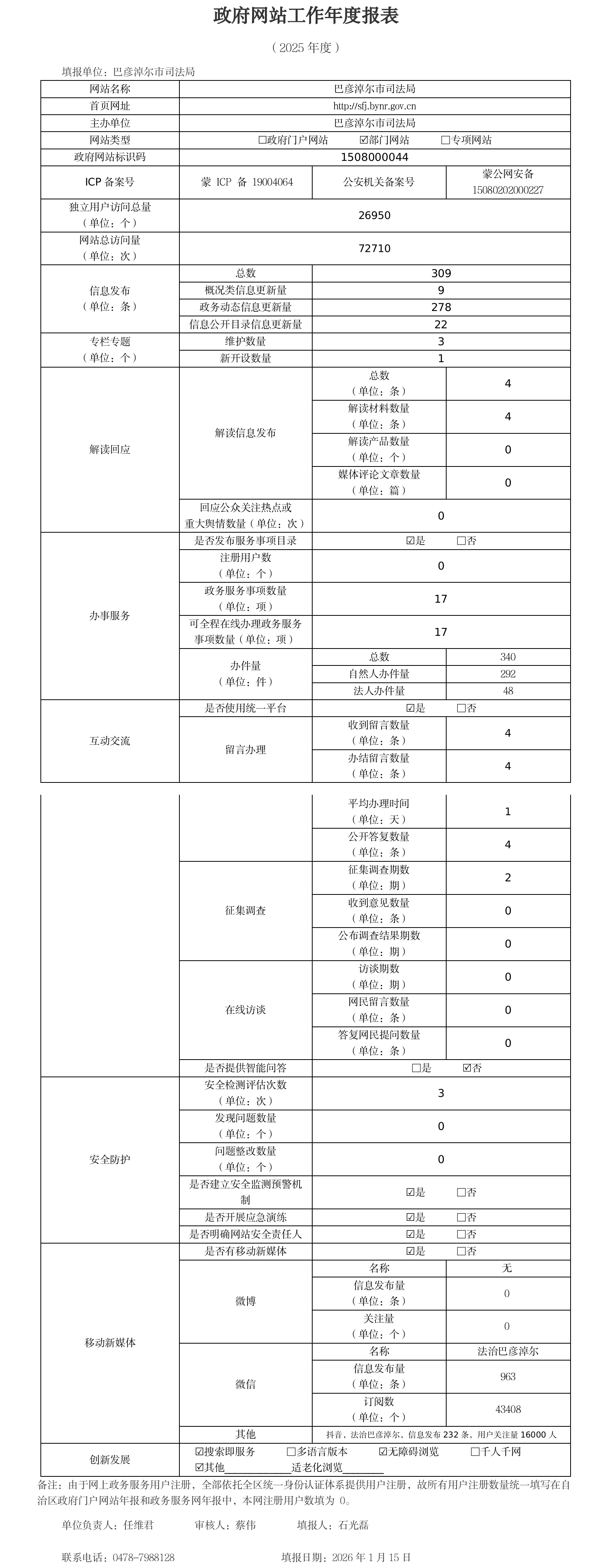 2025年巴彦淖尔市司法局政府网站工作年度报表